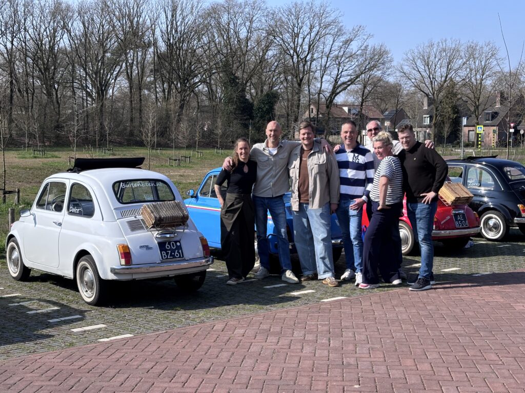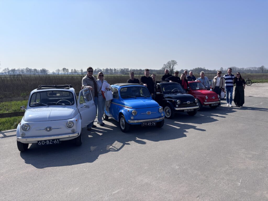 Het bestuursuitje was er eentje om niet snel te vergeten. Op een stralende, zonnige dag reden we naar het Brabantse Someren. Daar werden we warm ontvangen met een kop koffie en een lekker stukje vlaai, waarna de sfeer er meteen goed in zat. Niet veel later stapten we in vijf superleuke Fiat 500’s, klaar om met z’n allen op pad te gaan.